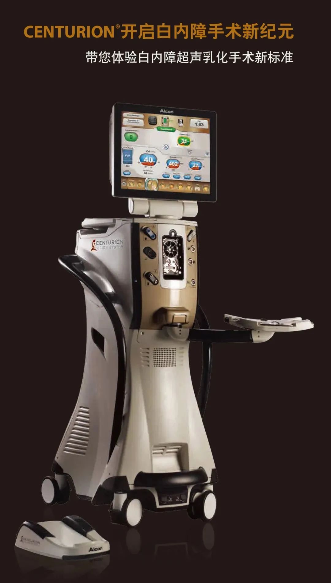 CENTURION*白内障超声乳化手术系统是能够动态优化每个手术步骤的白内障智能超声乳化平台,为白内障超声乳化技术创立了全新的标准: