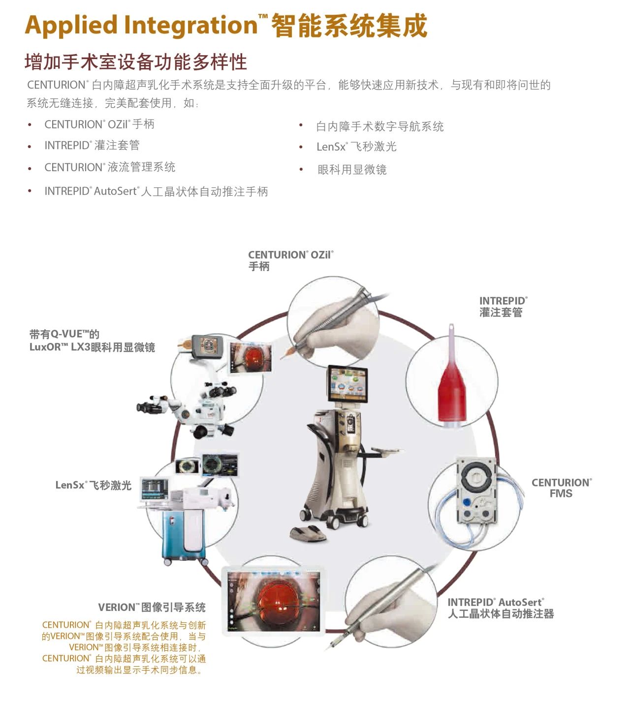 .Applied Integration:智能系统集成能力可搭载白内障手术数字导航系统,提高手术效果,为现在以及未来的白内障手术提供一整套完美化解决方案。